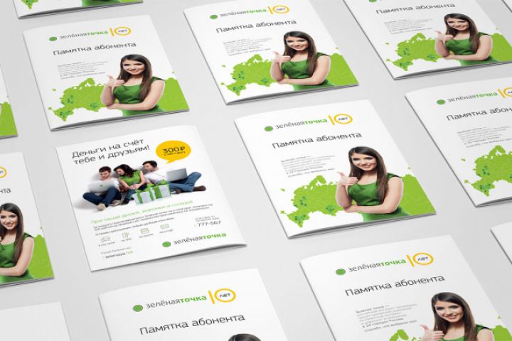 В компании была поставлена задача придумать новый информативный материал для выдачи при подключении новых абонентов, который содержал бы в себе максимум информации о продуктах компании, услуг и новых возможностях. При этом материал должен быть достаточно простым и понятным, интересным для чтения и приятным для глаз. Решением было сделать универсальную памятку, которая была растиражирована по всем городам присутствия сети компании. Подробнне по ссылке https://www.behance.net/gallery/72341189/Subscriber-memo