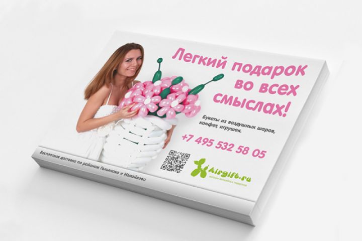 Реклама магазина "волшебных" подарков - цветы из воздушных шаров, конфет, игрушек. г. Москва