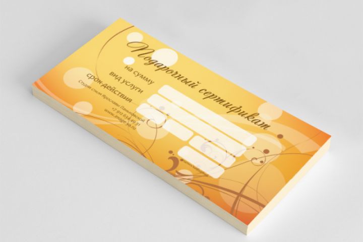 Дизайн подарочного сертификата для студии стиля Ярославы Паньковской