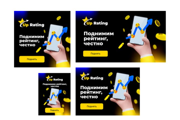 Рекламные баннер РСЯ сервиса, помогающего поднять рейтинг на любой площадке с отзывами.