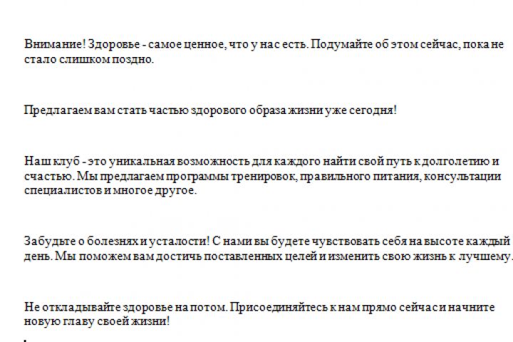 Продающий текст на тему здорового образа жизни
