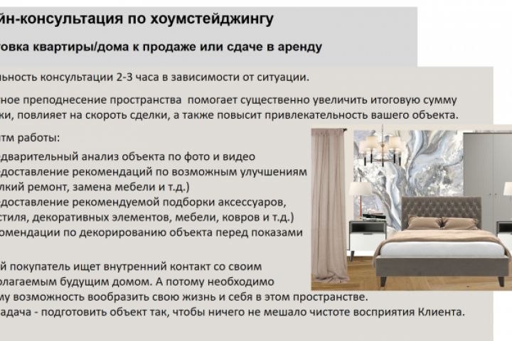 Описание услуг: онлайн - консультация по хоумстейджингу