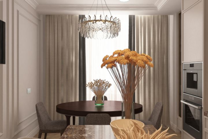Круглый стол выглядит компактно и аккуратно в интерьере