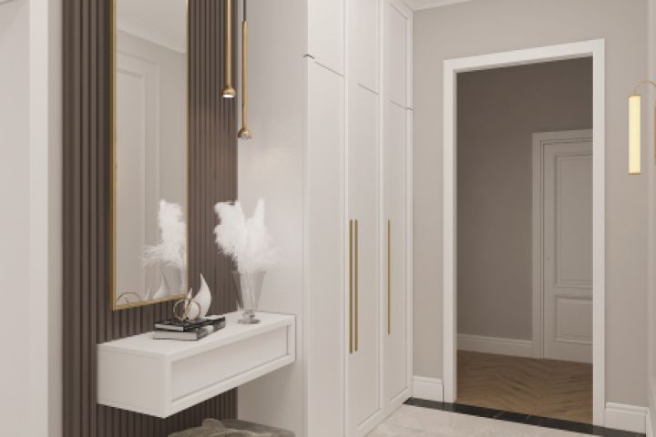 Современная прихожая с золотыми элементами