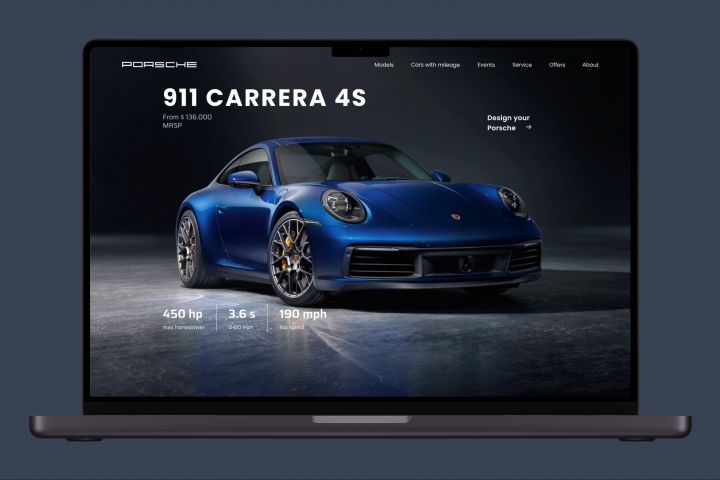 Porsche - редизайн страницы презентации модели 911 Carrera 4S