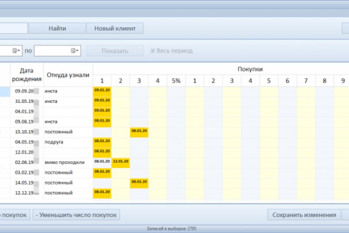 - Учёт покупок клиентов и накопления ими скидок - СМС рассылка - Выгрузка отчётности