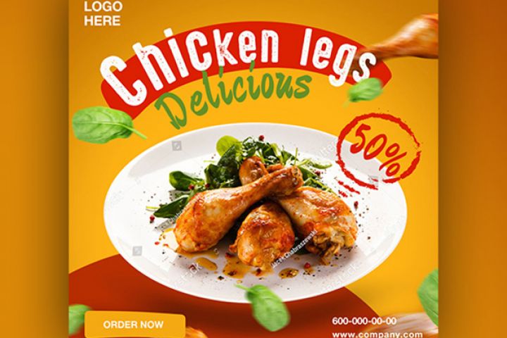 Баннер для рекламы продуктов питания в социальных сетях, ресторане и кулинарном блоге «Chicken legs»