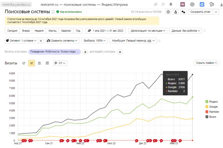 На скрине показана статистика поисковой посещаемости сайта с момента начала наших работ.
