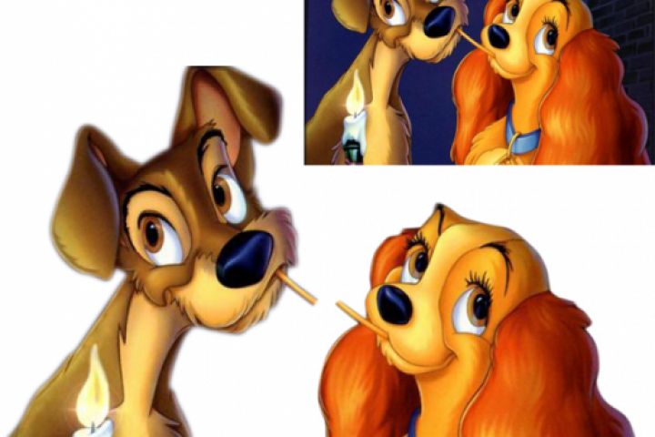обтравка иллюстрации мультфильма Леди и Бродяга
