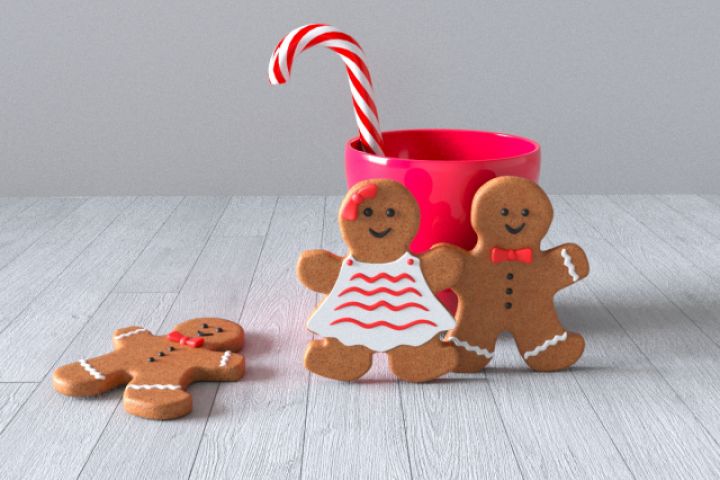 3 имбирных пряника покрытых сахарной глазурью двух цветов -красной и белой;