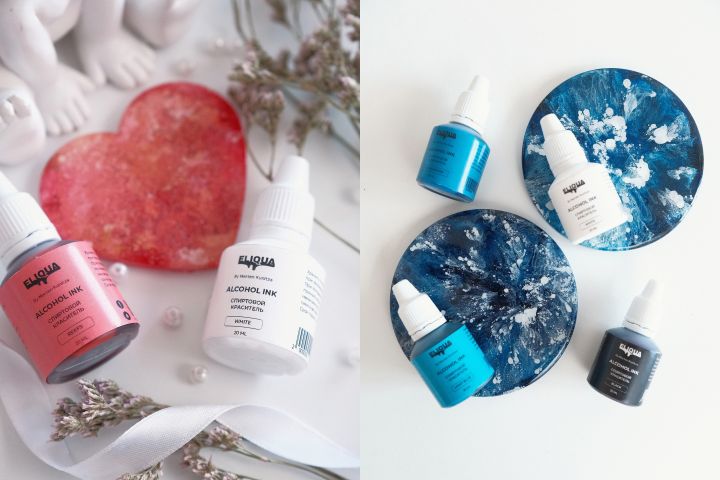 Компания Eliqua занимается производством эпоксидной смолы с доставкой по всей России и миру. Эпоксидная смола это специальное вещество-олигомер, которое часто используется для творчества и создания декора, элементов интерьера. Компания выпустила в продажу новинку - спиртовые красители, для них требовалось разработать дизайн этикеток, всего 22 штуки.