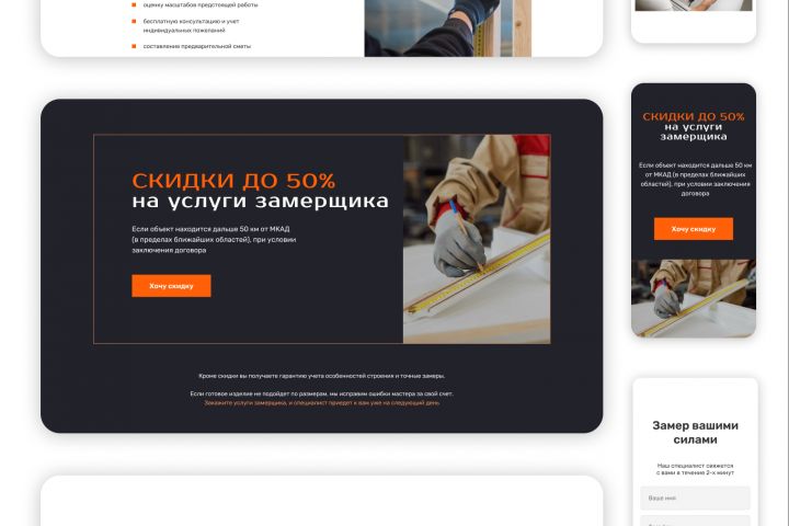 Дизайн сайта по продаже и монтажу мягких окон, страница замера