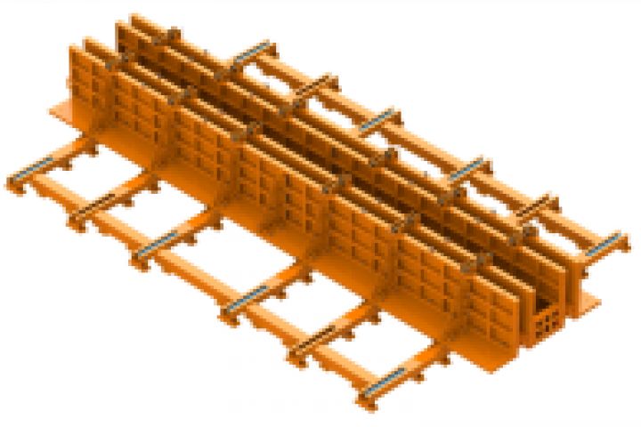 Кассетно-формовочная машина для изготовления железобетонных изделий. Оснащена гидравлическим приводом.