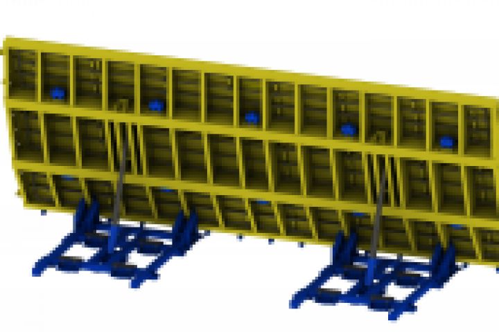 Поворотный вибростол для производства железобетонных изделий. Оснащен телескопическими гидроцилиндрами, подогревом и вибраторами.