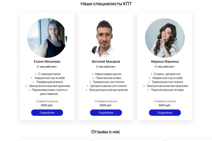 - Разработаны личные страницы психологов