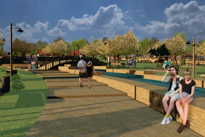 Экстерьер прогулочной зоны для курсового проекта ландшафтного парка