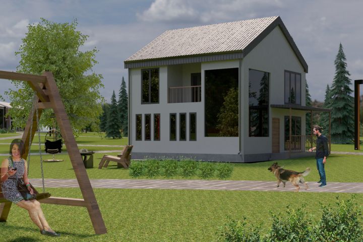 Экстерьер двухэтажного дома для курсового проекта туристической базы