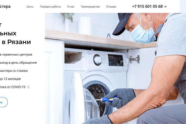 Это одностраничная страница, которая посвящена ремонту стиральных машин. Я постарался собрать всю необходимую информацию об услугах, чтобы клиенты могли легко находить ответы на свои вопросы. Благодаря автоматическому деплою можно обновлять контент на сайте мгновенно и оперативно.