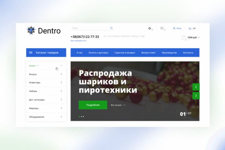 Дизайн сайта интернет-магазина компании "Dentro" по продаже пейнтбольных товаров.