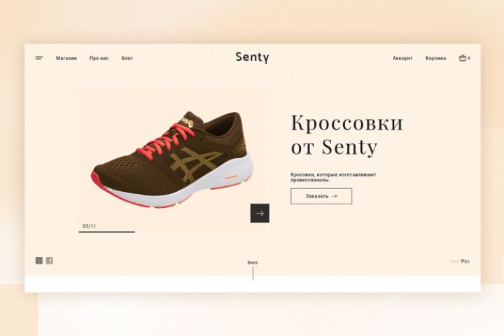Дизайн для сайта Senty специализирующегося на кроссовках.