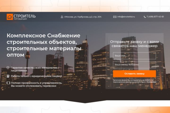 Дизайн лендинга по прототипу для компании "Строитель".