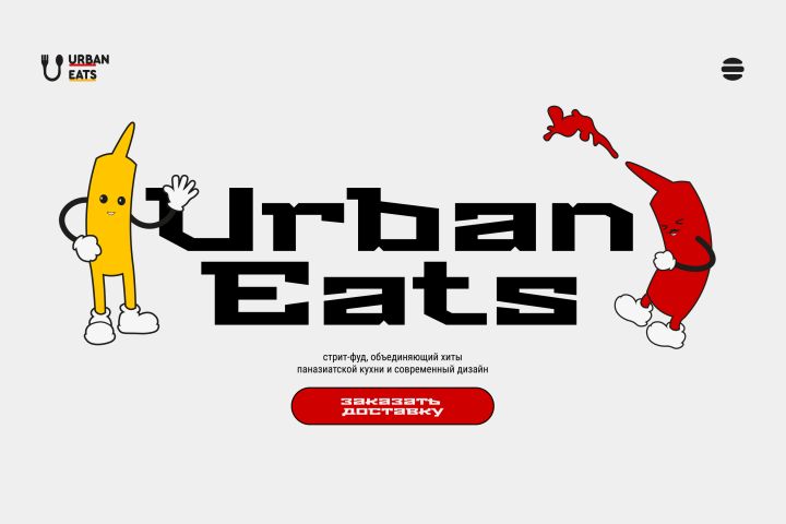 Лэндинг для ресторана паназиатской кухне, фишка которой этот мини комиксы с горчицей кетчупом
