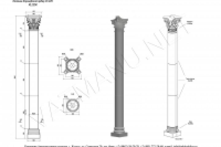 Оформление страницы технического каталога архитектурных изделий. Чертеж колонны выполнен в AutoCad, а трехмерная картинка колонны сделана в SolidWorks и Photoshop