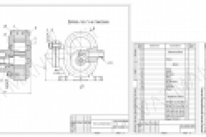 Сборочный чертеж шестеренчатого насоса и спецификация к нему. Выполнено в Компасе