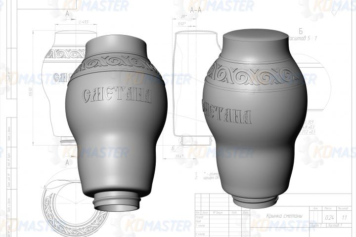 Разработка 3d модели и чертежа крынки по ТЗ заказчика, для последующей отливки