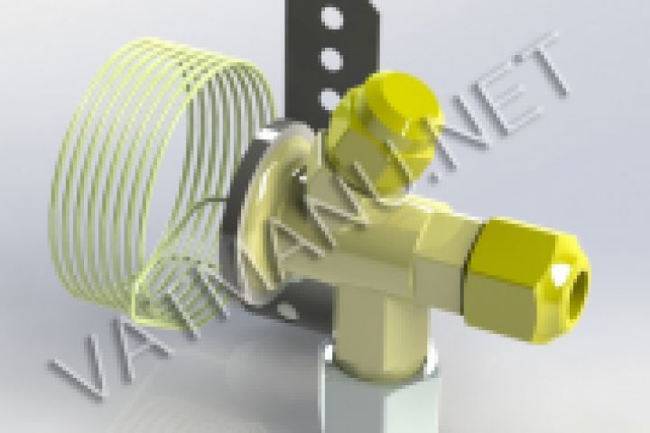 3d модель терморегулирующего вентиля, смоделировано и отрисовано в SolidWorks