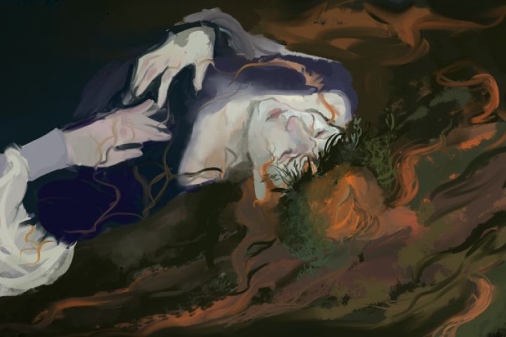 Осовремененный вариатив образа Офелии. Иллюстрация выполнена в Adobe Photoshop/растр.