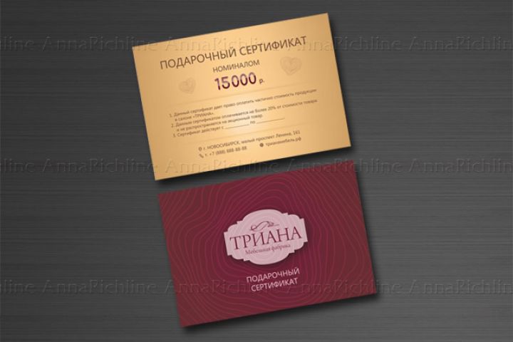 Дизайн сертификата мебельной фабрики