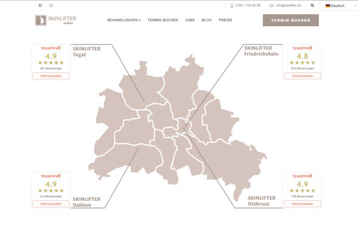 Работали с немцами. Был разработан дизайн сайта для косметического салона по техническому заданию заказчика. Развернут был на платформе Wordpress с использованием разнообразных плагинов для решения большинства задач, так же была настроена мультиязычность. Верстка настроена для добавления разнообразного контента и нескольких типов записей через админ панель вордпресс.