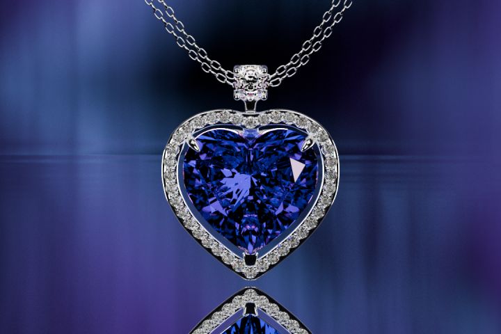 Моделирование и анимация колье с танзанитом огранки "сердце"
