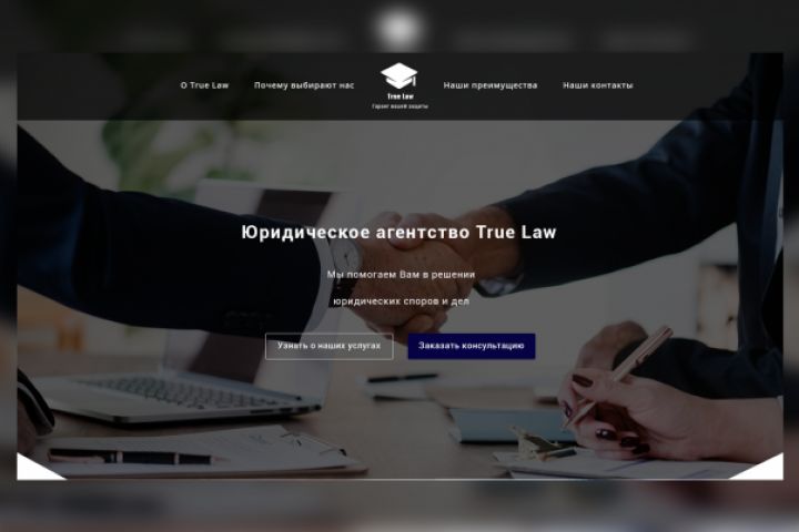 Цель сайта - вызвать у пользователя доверие и сделать так, чтоб он обратился именно в TrueLaw.