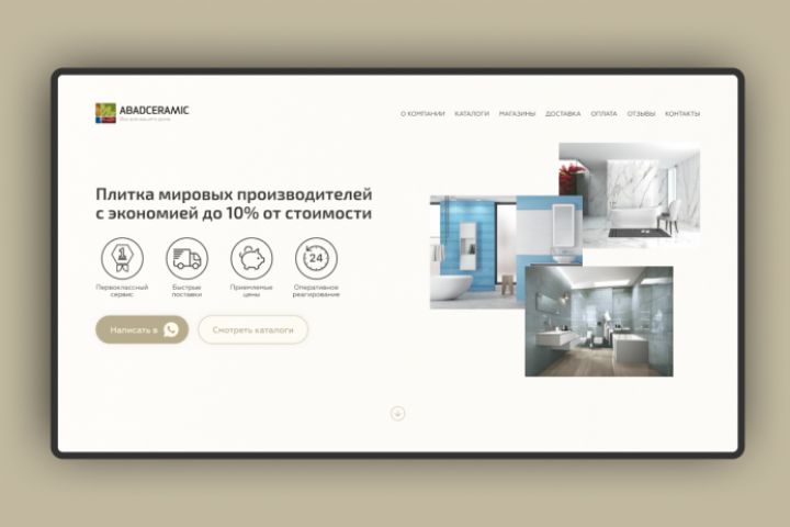 Создание сайта "под ключ". Был разработан индивидуальный дизайн лендинга для продажи керамической продукции. Фирме AbadCeramic требовалась современная продающая страница и эта задача была решена.