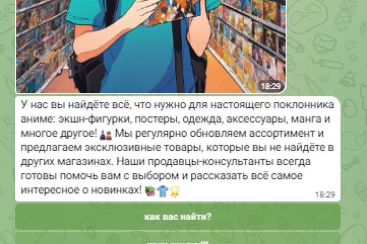 Чат-бот для аниме-магазина - это виртуальный помощник, созданный для улучшения взаимодействия с клиентами и повышения эффективности продаж. Этот интеллектуальный агент использует естественный язык для понимания запросов посетителей и предоставления персонализированной информации.