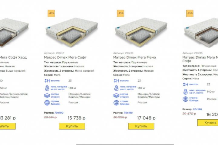 Размещение товаров c ценами на размеры
