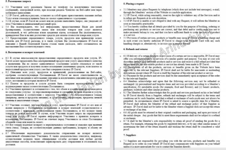 Перевод договора об оказании услуг туристическим агентом с русского языка на английский язык