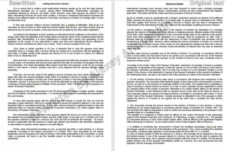 Рерайтинг информационно-рекламного текста на английском языке на тему разводов в России с сохранением информативной части