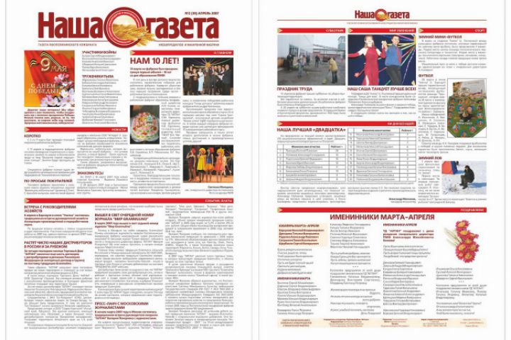Профессиональная газета хлебокомбината «Наша газета». Формат А3.