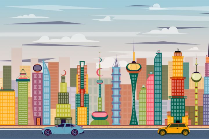 Это большой город со множеством необычных зданий. Все здания показывают нам разнообразие нашего мира.