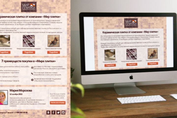 Дизайн электронного письма для компании "Мир плитки"