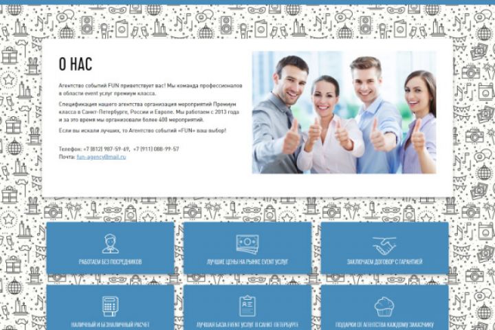 Клиент Агентство событий FUN Задача - разработка дизайна - создание сайта-визитки - настройка CMS - SEO оптимизация