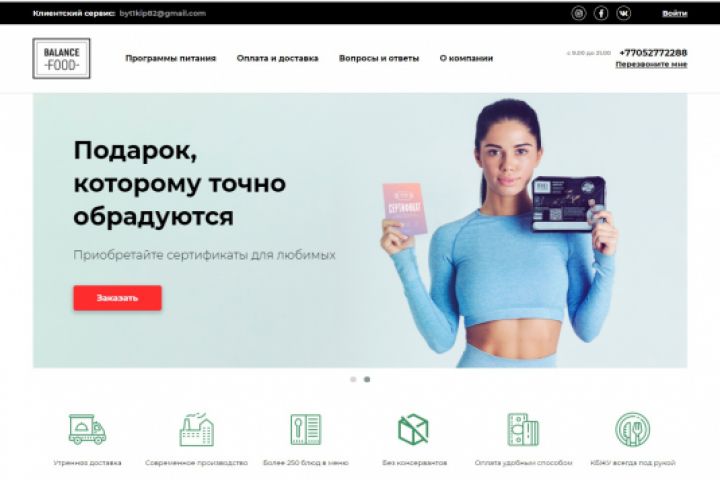 Сайт по продаже сбалансированного питания. Использованная CMS: Wordpress.