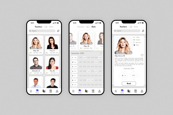 Концепт приложения для онлайн школы английского языка - букирование преподавателя