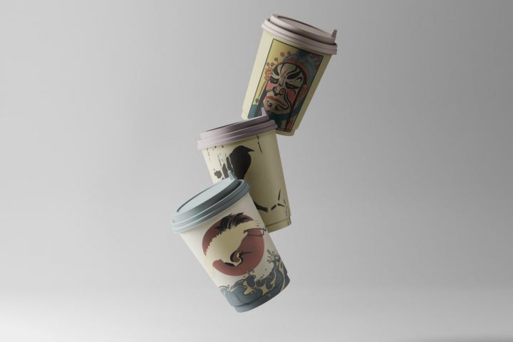 Разработка наклеек для стаканов в кофе-поинте, выполненном в старо-японском стиле