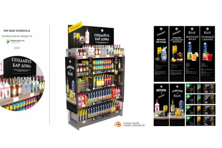 Разработка дизайна и 3D-модели торгового оборудования Mix Bar секции (гондолы) для магазинов Перекресток.