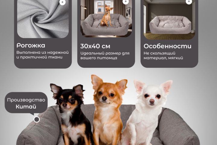 - Концепция дизайна: Определила основные элементы и стиль, которые помогут выделить ключевые преимущества лежанки для собак.