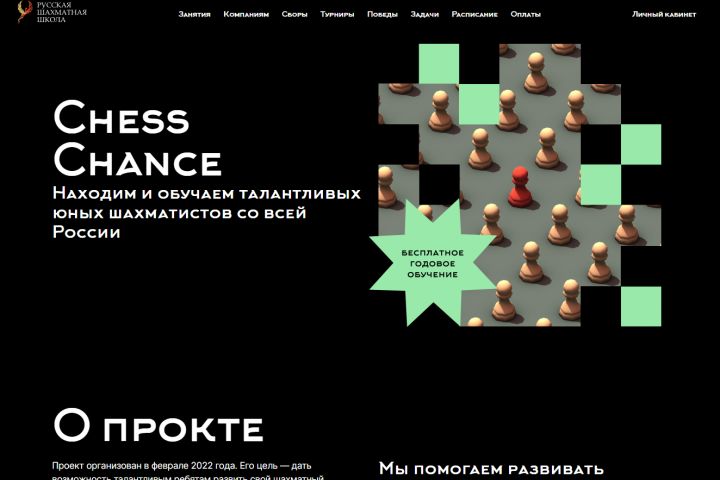 Лендинг страница для шахматной школы Выполненные frontend задачи в проекте: Верстка адаптивная, кроссбраузерная HTML5; CSS3 (flex, grid); Native JavaScript, Jquery;